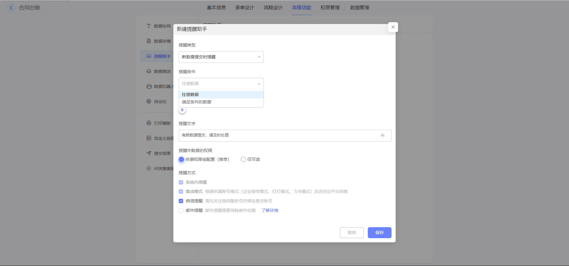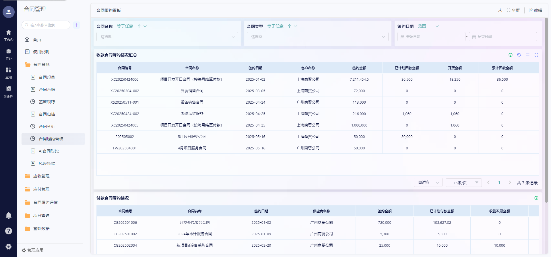 自动提取履约节点,临期弹窗提醒,逾期风险提前预警 |