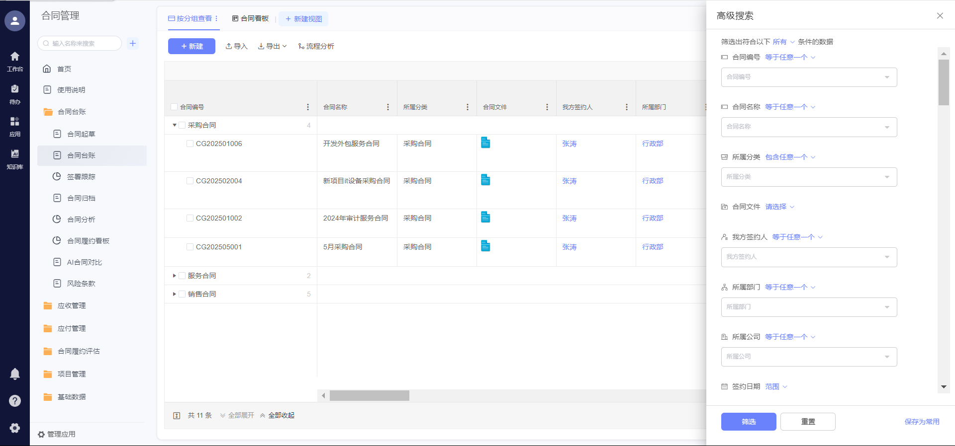 合同签署后自动归档,无需人工整理,按合作方、金额、日期等关键词一秒检索。权限分级管理精准控制查看范围,完全适配审计和合规检查需求,再也不用为找合同、查记录发愁。