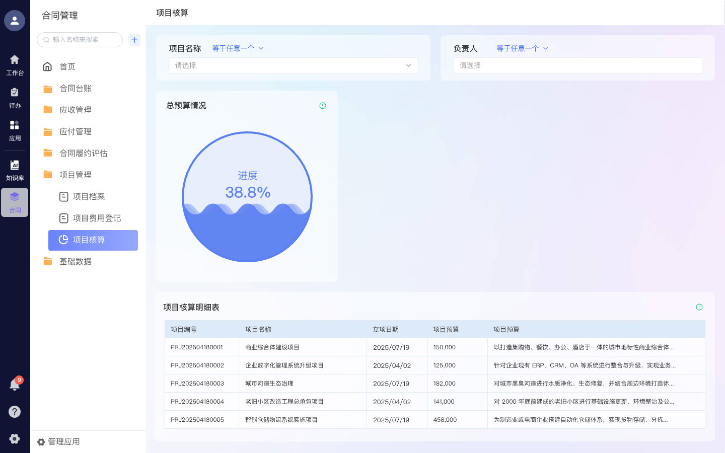 同时支持多维度数据分析,自动生成合同金额、履约率、风险分布等报表,让“沉睡”的合同数据变成决策依据,帮企业优化成本、评估供应商。