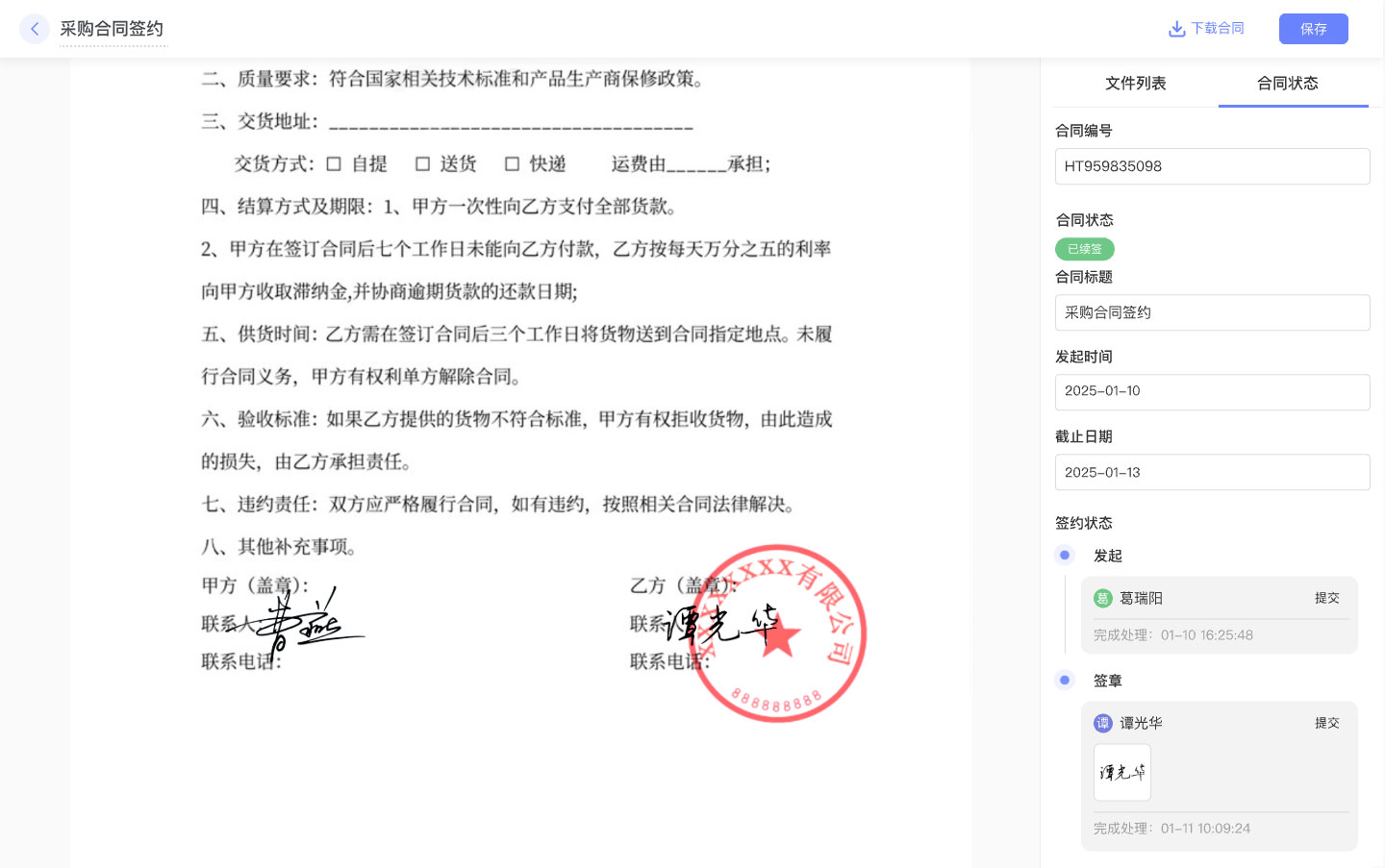 1. 省时间:以前每份合同从起草、审批、签署到归档,耗时长久,现在大幅缩短,一年下来,能节省大量工作日,员工不用再围着合同跑腿,能把精力放在核心工作上,效率翻倍。