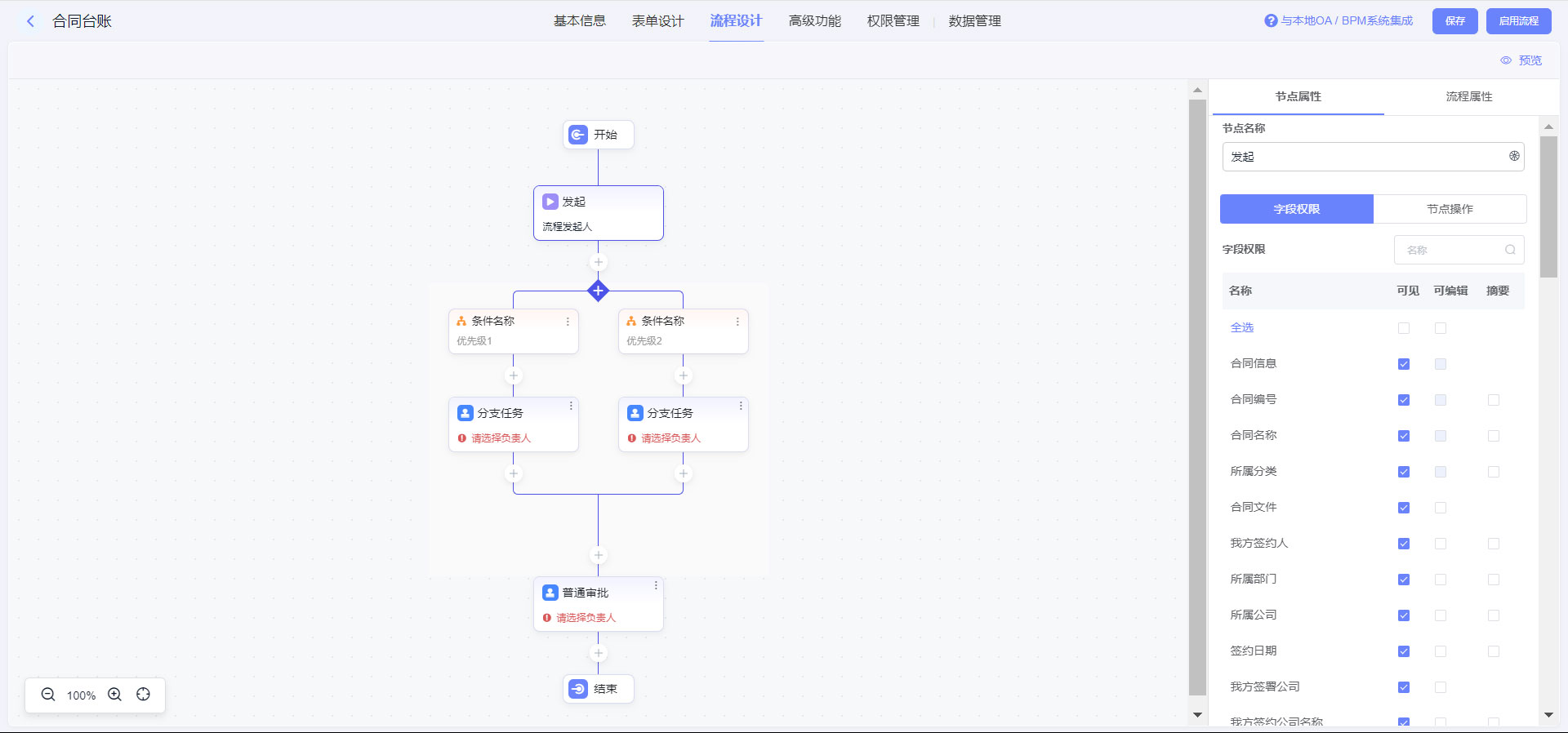 - 自定义审批流:按企业组织架构、合同类型配置审批节点,规则灵活可调。