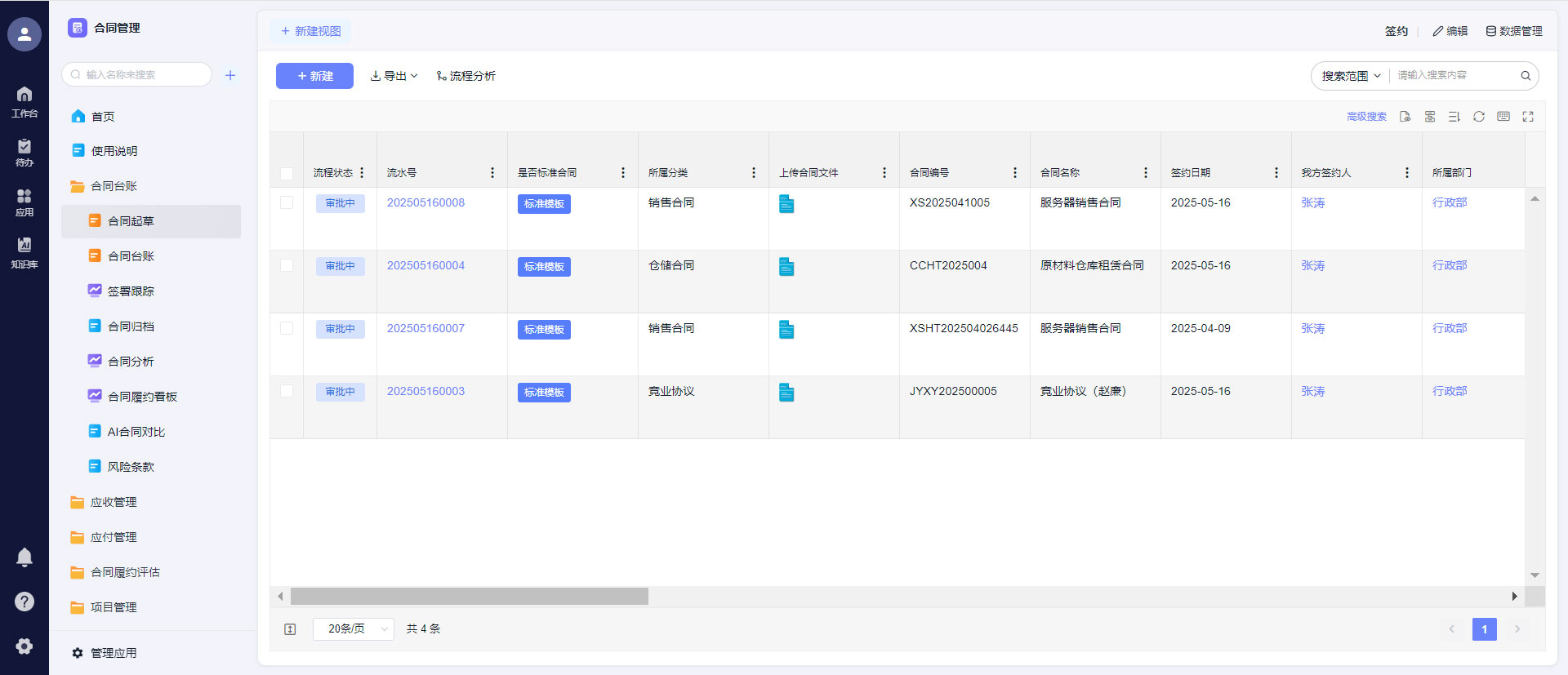 统计各部门审批时长、合同签署周期、履约完成率,找到流程瓶颈,优化审批、履约流程,提升人效 |