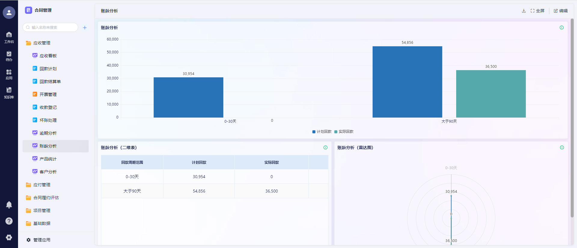 - 实时统计所有销售合同的回款进度、未收款项、逾期账款,生成现金流预测报表;