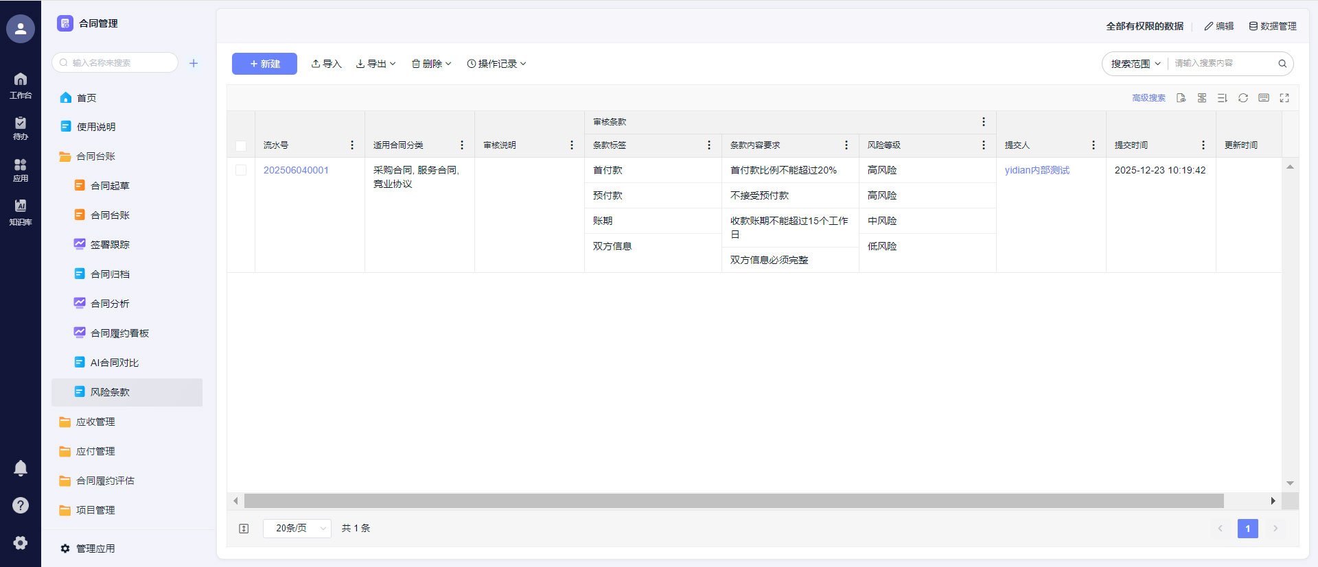 - 业务端:合同生效后,自动同步到CRM、生成订单、采购计划,业务执行不脱节;