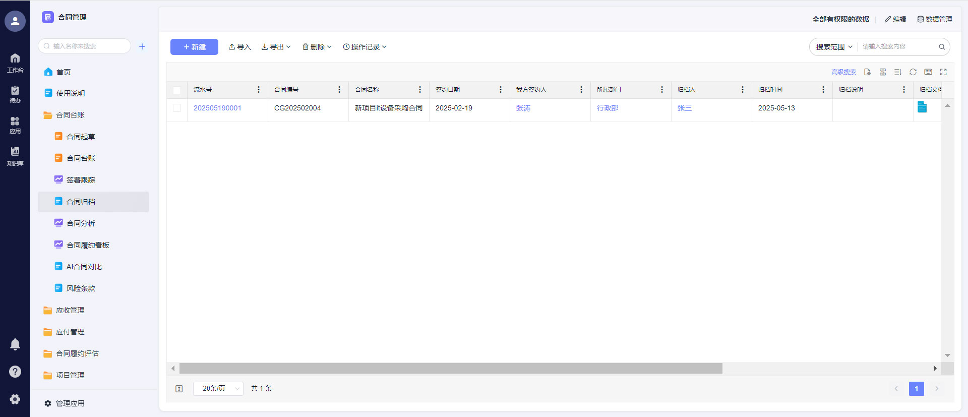 四、归档管理风险:合同存储乱、查找难,智能归档一键管理