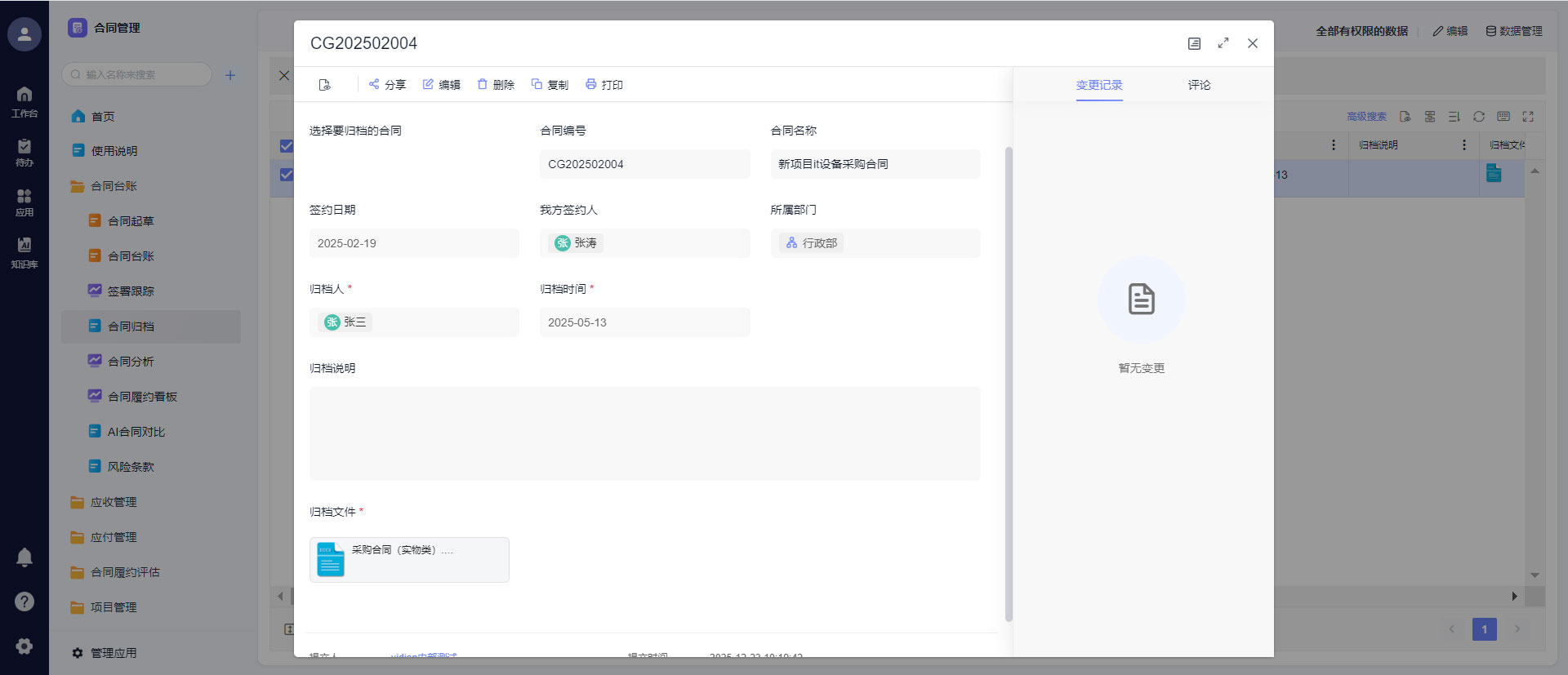 - 合同变更全程留痕,谁改的、改了啥、什么时候改的,一键可查