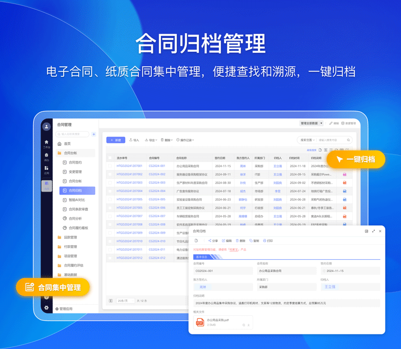 纸质合同归档后,查找时需翻箱倒柜,不仅耗时,还容易出现丢失、损坏等问题;即使是电子合同,若分散存储在不同电脑或文件夹中,也会面临检索困难的问题。