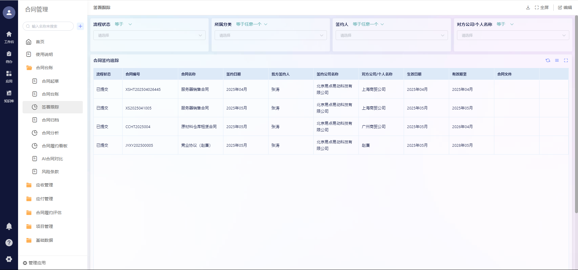很多企业都吃过这亏:合同签完就归档,没人跟进履约情况,结果忘了催回款,或者对方逾期交货了都不知道,等发现的时候已经造成损失了。我有个做工程的朋友说,他们以前就因为忘了跟进付款节点,一笔300万的应收账款逾期超180天,最后对方公司资金链断了,钱差点要不回来。