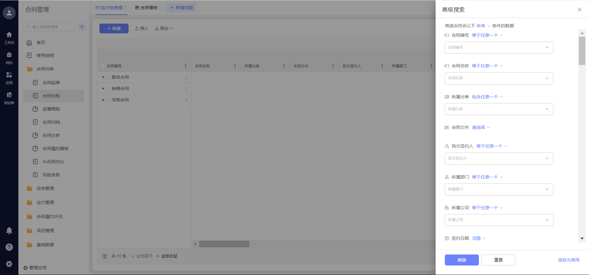 而且系统会自动给合同分类、打标签,比如按“销售合同”“采购合同”“劳动合同”分,还会提取合同里的关键信息,像合同金额、签署日期、履约状态这些,方便你快速筛选。同时,系统对合同做了加密处理,不同岗位的人有不同的查看权限,既能保证合同信息安全,又能避免泄露。