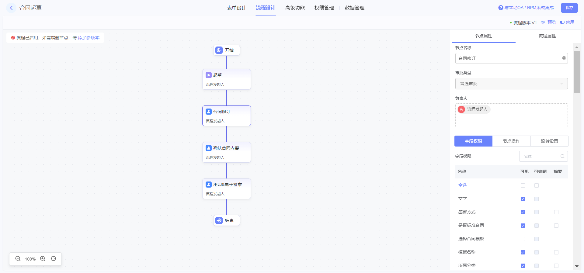 鲸签云的动态审批功能,彻底打通了审批堵点。你可以根据业务需求自定义审批流程,设置“普通审批”“紧急审批”等不同节点,负责人不在公司也能通过手机在线签字。系统还会实时推送审批提醒,哪一步卡住了、谁还没审批,打开后台就能看到,还能直接一键催办。
