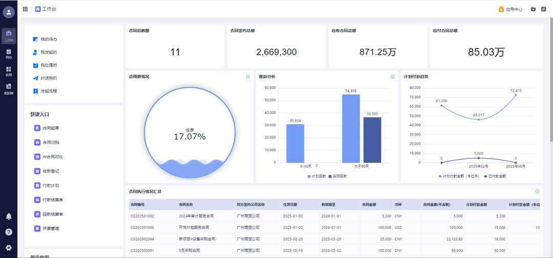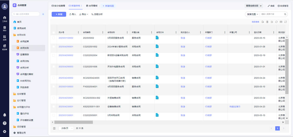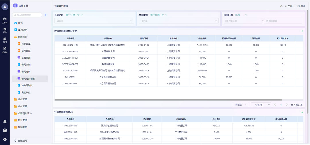 以前管合同,只能靠人工统计“签了多少份合同、总金额多少”,没法知道“哪个环节效率低、哪个客户履约率差、合同风险集中在哪些方面”,老板要数据,只能临时加班统计。