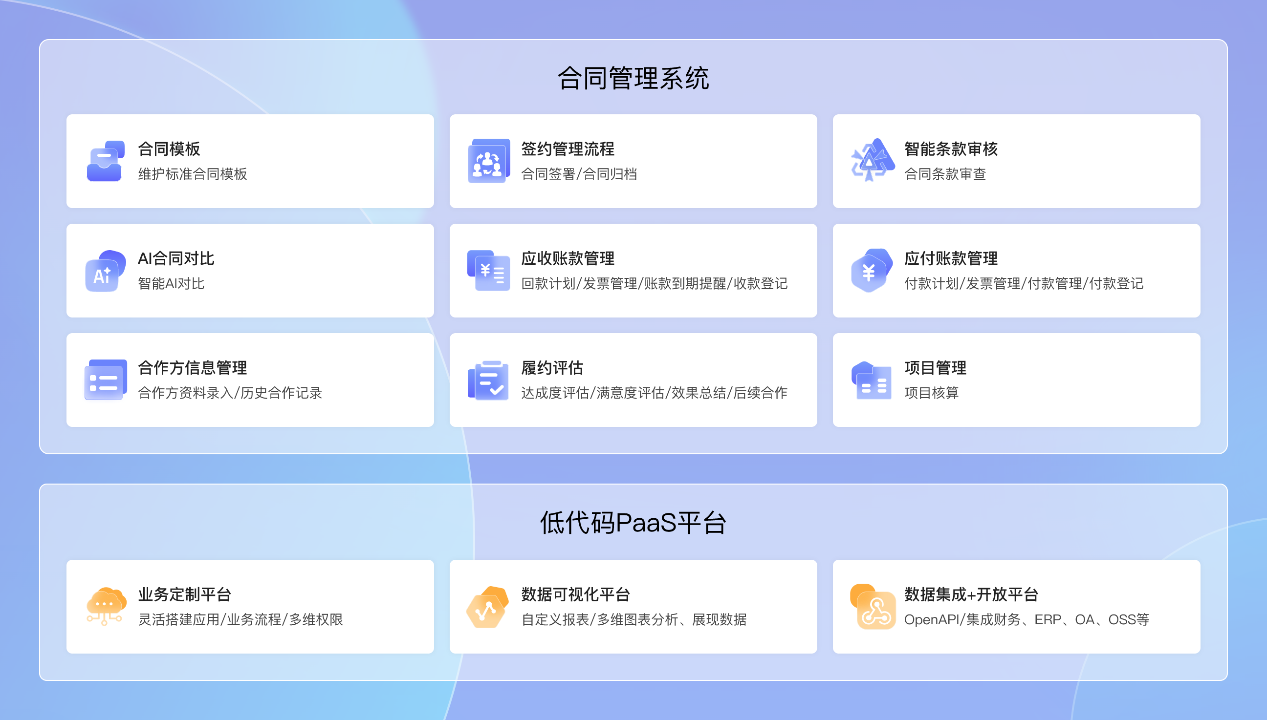 - 全流程覆盖:从起草到归档,合同管理环节无缝衔接
