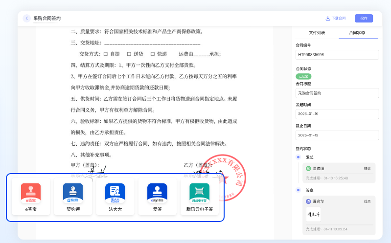 以前异地合作,合同得寄来寄去,光快递就等好几天,还得花快递费。鲸签云集成了主流的电签平台,不管对方在哪个城市,把合同链接发过去,几分钟就能完成签署。关键是这电子签名完全合法,有国家授时中心的时间戳,还有存证,和纸质签名有一样的法律效力,就算出了纠纷也能拿得出合规证据。之前有个物流企业用它批量签运输协议,一天就搞定了