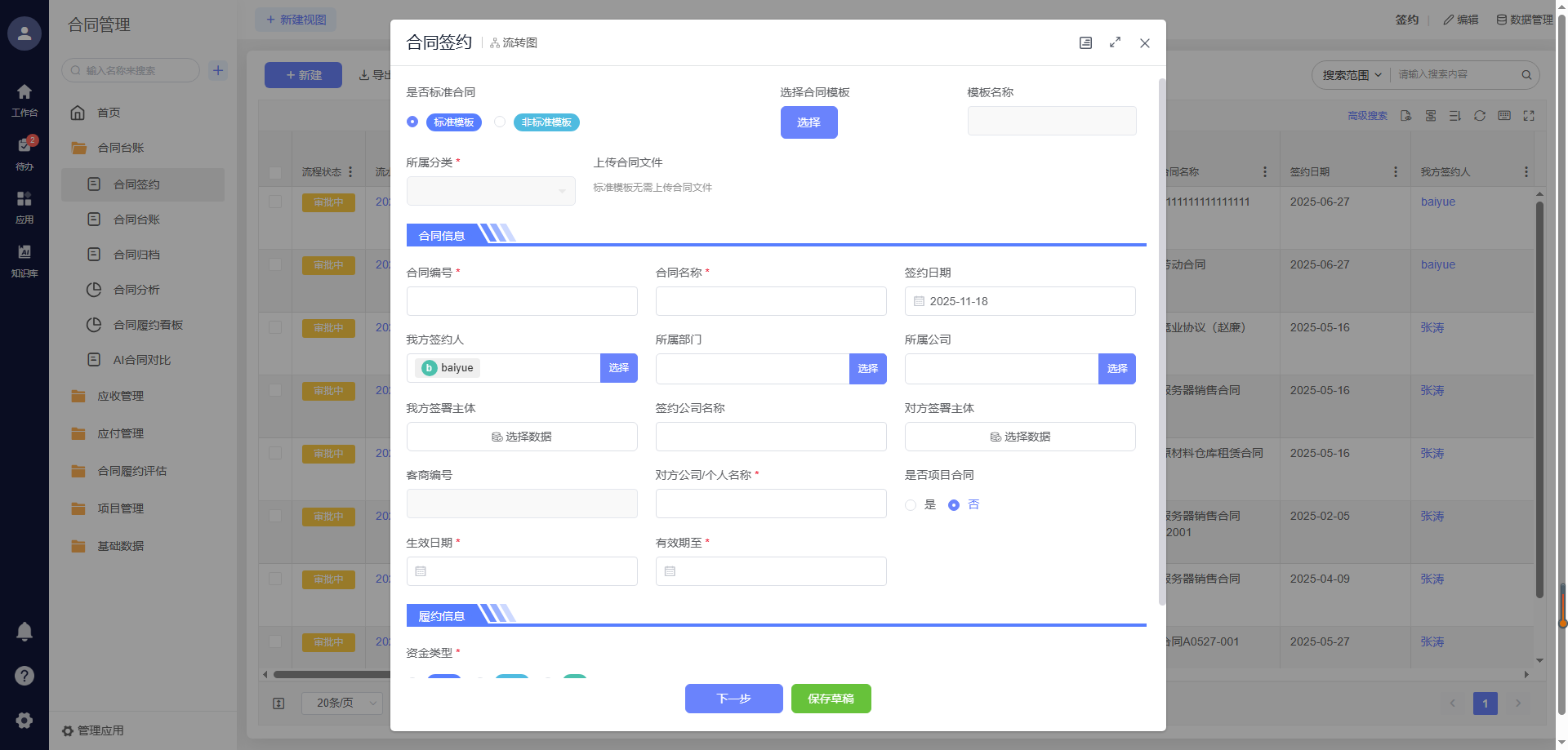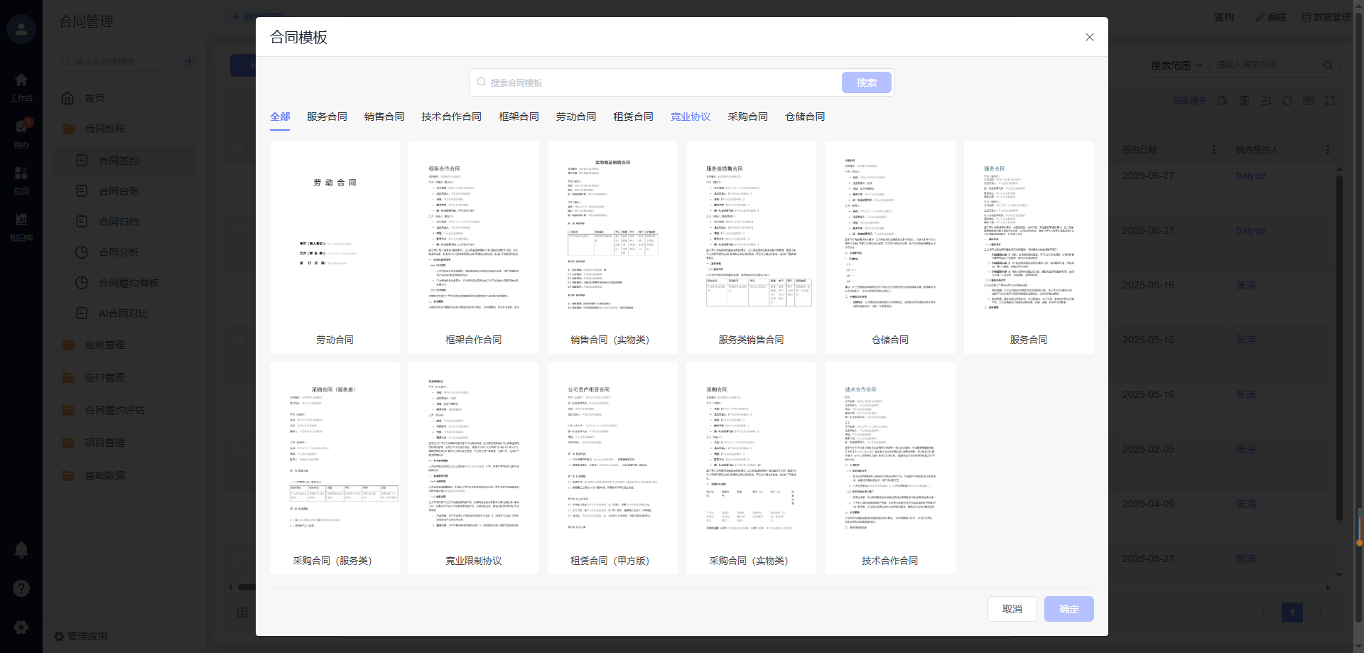 需要起草合同时,只需选择对应模板,填写甲方乙方、金额、期限等关键信息,系统会自动生成完整合同。如果企业有自己的专属模板,也能上传到系统里,设置固定条款和可修改区域,避免员工乱改核心内容,保证合同规范统一。