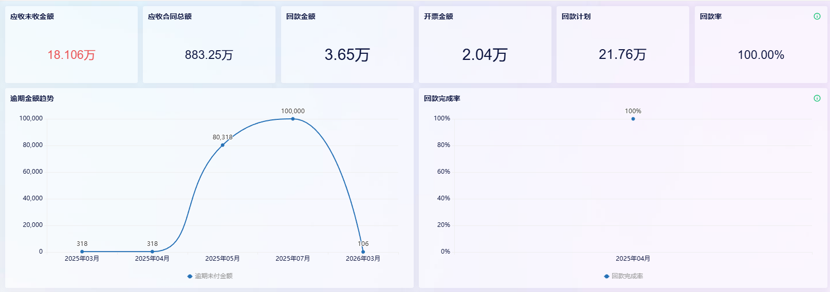 - 自动生成"合同履约报表""风险预警报告"等可视化看板。