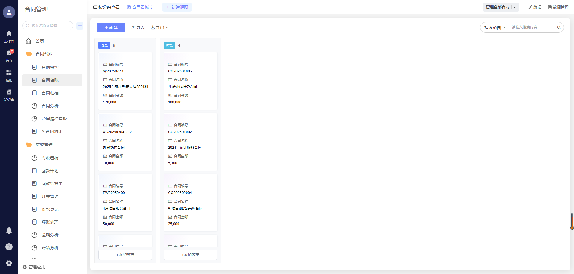 - 实现合同收款、付款的自动化提醒和处理,提高资金使用效率;